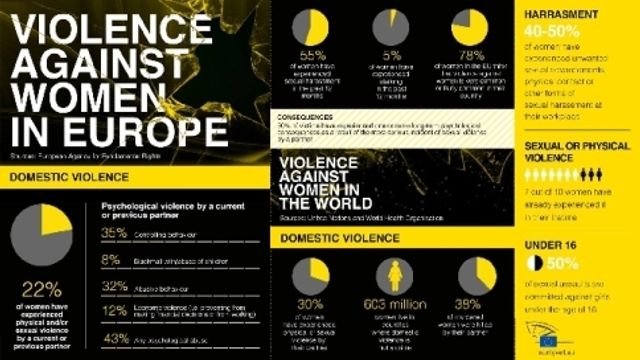 Una donna su tre ha ricevuto una qualche forma di abuso fisico dall'età di 15 anni. Non in un paese sottosviluppato, ma nell'Unione Europea. Il 10% ha subito un tipo di violenza sessuale che nel 5% dei casi è diventata stupro vero e proprio. Sono questi i numeri shock del rapporto "Violenza contro le donne" realizzato dalla European union agency for fundamental rights (FRA). Nell'indagine sono state coinvolte 42mila donne, di età compresa tra i 18 e i 74 anni, intervistate in 28 paesi dell'Unione Europea.