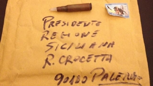 Una busta contenente un proiettile da fucile di grosso calibro è stata inviata al presidente della Regione Sicilia, Rosario Crocetta. Il plico, che è stato intercettato dai sistemi di controllo a Palazzo d'Orleans, a Palermo, è stato ora affidato agli investigatori.