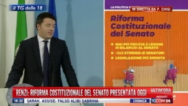 Il presidente del Consiglio in piedi, fa scorrere le slide mentre illustra i provvedimenti. E' inedita la formula scelta da Matteo Renzi per la conferenza stampa al termine del Cdm. Il premier spiega quello che il governo ha fatto e intende fare con il supporto di slide colorate, sul cui sfondo compaiono alcune illustrazioni. Si fa notare, in particolare, una boccia con dentro un pesciolino rosso. Ma non e' la sola innovazione, nella comunicazione istituzionale del governo. Mentre Renzi parla, il profilo twitter di Palazzo Chigi sintetizza il suo intervento in diretta, attraverso tweet con l'hashtag lanciato dal presidente: #laSvoltabuona.