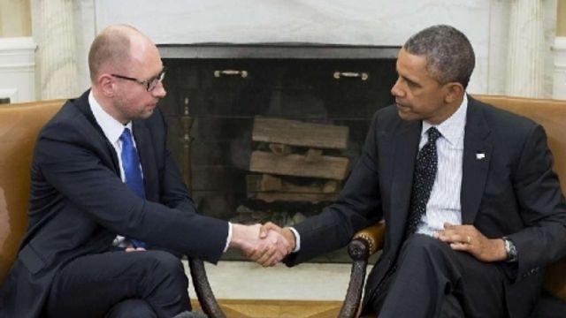 "Il popolo ucraino non può andare avanti avendo un Paese vicino che decida il loro futuro, come portare avanti i loro affari interni, con la canna di una pistola puntata". Lo ha detto Barack Obama, al termine dell'incontro con il premier ucraino Arseni Iatseniuk. "L'Ucraina è e sarà parte del mondo occidentale", ha aggiunto Iatseniuk. "Spero - ha detto ancora Obama - che si possa evitare il referendum in Crimea attraverso ogni sforzo diplomatico".