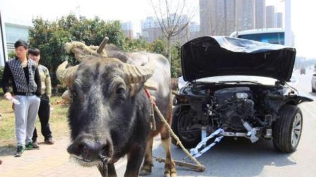 Con la sua Bmw, dal valore di 130mila dollari, ha un incidente stradale, nel quale l'airbag non funziona correttamente. Un automobilista cinese quindi decide di chiedere un rimborso alla concessionaria dove ha acquistato il mezzo, il rivenditore però non ci sente e nega la richiesta. A quel punto, scatta la protesta: il mezzo torna indietro trainato da un bufalo noleggiato per l'operazione.