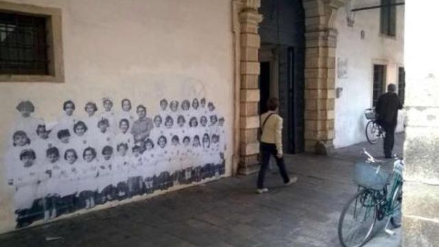 I muri del centro di Padova stanno diventando lo spazio di qualche writer, che sta dimostrando le sue capacità con la riproduzione di foto giganti. Le immagini sono legate al passato e raffigurano foto di gruppo scattate a scuola, con tanto di insegnanti. Giorni fa, il primo scatto riguardante una classe maschile; ora la versione femminile, vicino all'ingresso del dipartimento di Storia dell'università patavina.