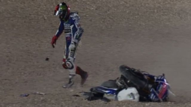 Il Mondiale di MotoGP 2014 si apre con una grande sorpresa: dopo un'ottima partenza che lo ha lanciato subito al comando, il vice campione del mondo, Jorge Lorenzo è caduto al primo giro commettendo un errore che lui stesso ha definito "da principiante" (ha perso l'anteriore in staccata e ha preso una gran botta al collo)