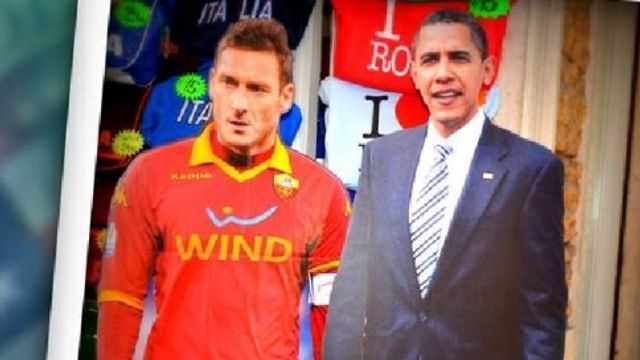 Diplomazia, con ironia. E' lo stile adottato dall'ambasciata Usa in Italia. Per dar conto dell'ormai prossima visita a Roma del presidente Barack Obama, l'account Twitter della sede diplomatica di via Veneto ha diffuso una foto in cui Obama posa al fianco di Francesco Totti. "#ObamainItalia, i colloqui informali sono già iniziati... di cosa potrebbero aver parlato, #Totti e il Pres. #Obama?", recita il testo del tweet. La campagna è parte di 'un'offensiva' sui social network che vede anche uno speciale sulla pagina Facebook dell'ambasciata, dove si può consultare una 'timeline' su tutte le visite dei presidenti Usa in Italia, così come alcuni filmati sui tour più celebri. Uno su tutti quello di John Kennedy.
