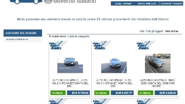 Arrivano su eBay le prime "auto blu" messe all'asta dal Governo. Si tratta di diverse vetture diesel del ministero dell'Interno dipartimento Polizia Stradale, euro 4, Alfa 166 2.4 Jtd M-Jet del 2007, colore grigio. Tutte hanno fatto più di 126.000 chilometri. L'interesse però sembra elevato visto che sono decine i rilanci. Certo, a colpi di venti euro in su, ma comunque sempre un buon interesse visto che comunque si tratta di vetture che hanno sulle spalle molti chilometri.