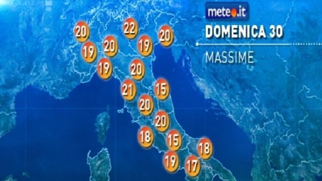 Le previsioni per domenica 30 marzo - Tempo bello, con prevalenza di cielo sereno o poco nuvoloso; appena qualche nuvola innocua, per lo più sotto forma di velature, su Nordovest, settore tirrenico, Calabria e soprattutto Isole. Temperature quasi ovunque in ulteriore lieve aumento: massime al di sopra della norma, tipiche di aprile-maggio e quasi dappertutto comprese fra 17 e 21 gradi, ma con qualche punta anche di 22-23 gradi. Ventoso nelle Isole per venti di Scirocco.