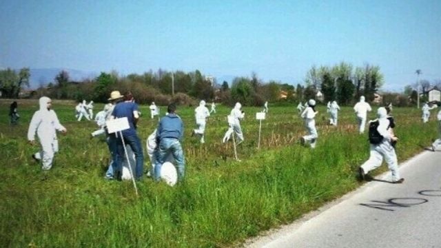 Attivisti dei centri sociali del Nordest e dell'Emilia hanno "invaso", a Vivaro, il campo di Giorgio Fidenato, l'agricoltore friulano che ha seminato lo scorso anno mais Ogm. Lo annuncia su Twitter l'attivista triestino Luca Tornatore, allegando alcune foto, tra cui quelle dell'invasione da parte del gruppo, vestito con tute bianche, e quella dove c'è un cassonetto di letame rovesciato davanti all'ingresso dell'azienda di Fidenato e il commento "concimatevi il cervello".