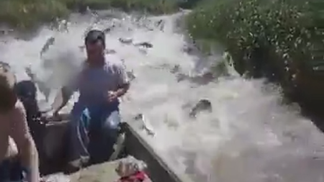 Non lo scorderanno facilmente i bimbi che su una barca attraversano un canale del lago Illinois negli Stati Uniti. Centinaia di carpe volanti sono come impazzite e sembrano voler impedire il passaggio dell'imbarcazione. Le risate isteriche dei piccoli indicano come un momento curioso poteva trasformare la gita in un film dell'orrore.
