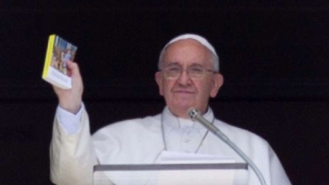 "Vi avevo suggerito di procurarvi un piccolo Vangelo da portare con voi, per poterlo leggere spesso - ha detto Papa Francesco al termine dell'Angelus -. Ma poi ho ripensato all'antica tradizione della Chiesa, durante la Quaresima, di consegnare il Vangelo ai catecumeni, quelli che si preparano per il battesimo. E allora ho voluto offrire a voi che siete in piazza, ma come segno per tutti, un Vangelo tascabile". Bergoglio ha poi mostrato il testo alla folla, aggiungendo: "Vi sarà distribuito gratuitamente. Prendetelo, portatelo con voi e leggetelo ogni giorno. E' Gesù che vi parla. In cambio di questo dono, fate un atto di carità, un gesto di amore gratuito. Una preghiera per i nemici, un atto di riconciliazione. Qualsiasi cosa".