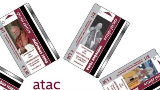 In occasione della canonizzazione del 27 aprile a Roma di Papa Giovanni XXIII e di Papa Giovanni Paolo II, l'Atac lancia una speciale iniziativa con la vendita in edizione limitata di quattro biglietti integrati a tempo. Dal 10 aprile, saranno 2 milioni i tagliandi con immagini inedite mai stampate fino ad oggi dei due Papi messi in vendita al prezzo di 1,50 euro. Un omaggio ai cittadini romani e ai milioni di turisti che arriveranno in città.