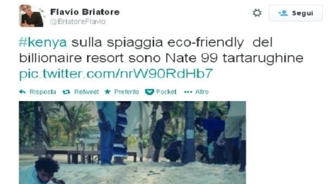 Prima twitta il lieto annuncio in italiano poi ci ripensa, lo rimuove e condivide la notizia in inglese. Flavio Briatore usa i social network per raccontare la sua nuova "paternità". Niente paura, Elisabetta Gregoraci non è di nuovo in dolce attesa, ma sulla spiaggia "eco friendly" del Billionaire kenyano, il resort posseduto appunto dall'imprenditore piemontese, sono nate 99 piccole tartarughine.