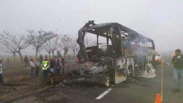 Almeno 36 persone sono morte nello scontro tra un pullman da turismo con un camion nello stato messicano di Veracruz, sulla costa del Golfo del Messico. Il bus, proveniente da Villahermosa e diretto a Città del Messico, ha preso fuoco dopo l'impatto con il mezzo pesante e 36 dei 40 passeggeri sono morti carbonizzati. I quattro feriti sono stati ricoverati con gravi ustioni in un ospedale di Acayucan.