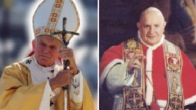 I reliquiari dei due nuovi santi sono stati consegnati al Papa subito dopo la dichiarazione di canonizzazione. Le reliquie sono una piccola ampolla col sangue per Papa Wojtyla e per Papa Roncalli un pezzetto di pelle raccolto in occasione della riesumazione della salma per la beatificazione, nel 2000.