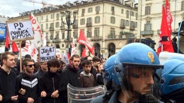 Cortei dalle principali città italiane per le celebrazioni del Primo Maggio. Attimi di tensione a Torino, dove sono presenti nel corteo antagonisti e No-Tav. Lo "spezzone sociale" ha tentato di forzare in via Roma il cordone di sicurezza, ma sono stati respinti. Eseguiti nuovi fermi della polizia, che ha sequestrato spranghe e bastoni. Sette poliziotti sono rimasti contusi, un funzionario della Digos è stato colpito alla testa con un manico di piccone.