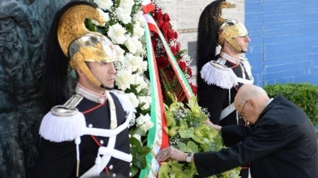 Le istituzioni celebrano il Primo maggio. Il presidente della Repubblica, Giorgio Napolitano, ha deposto una corona di fiori al monumento che ricorda le vittime del lavoro, davanti alla sede dell'Inail a Roma.