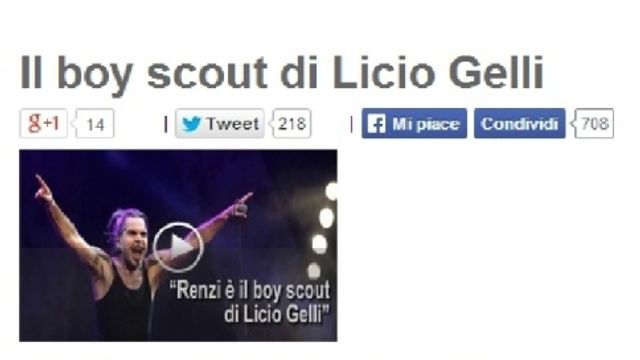 "Il boy scout di Licio Gelli": è questo il titolo di un post sul blog di Beppe Grillo in cui vengono riprese le parole pronunciate contro il premier, Matteo Renzi, da Piero Pelù durante il concerto del Primo Maggio. Dal palco di San Giovanni, a Roma, il rocker fiorentino ha parlato di "Renzie", scrive il leader del M5S, riportando integralmente le parole del cantante: "Non vogliamo elemosine da 80 euro, vogliamo lavoro".