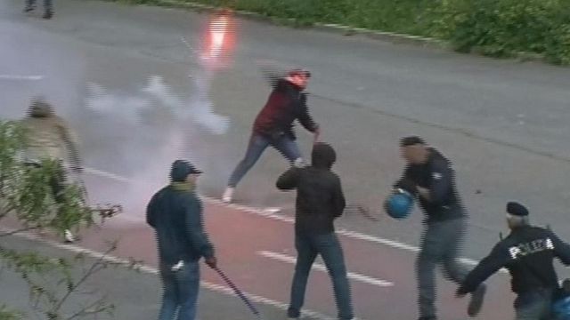Primi scontri nel pomeriggio - La tensione è salita nel tardo pomeriggio, quando sono cominciati gli scontri tra i supporters delle due squadre, cui avrebbero partecipato anche ultras della Roma, e tra questi e le forze dell'ordine. Contro gli agenti che scortavano le tifoserie perché non venissero a contatto, nei pressi di Ponte Milvio, sono stati lanciati bottiglie ed oggetti vari. Tafferugli tra i gruppi di sostenitori si sono verificati in altre zone vicino all'Olimpico. Anche nello stadio, poi, ci sono stati lanci di petardi e bombe carta.