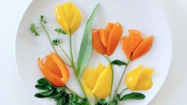 Prezzemolo, foglie di menta, peperoni e un angolo di giardino fiorisce sul piatto. E' una delle creazioni del Tumblr "Culinary canvas". Elle Purnell è un'artista che crea scenari utilizzando il cibo come pennello e il piatto come tela. Così la bottiglia di vino si fa col cavolo rosso, la mongolfiera si ottiene assemblando le bucce d'anguria e i funghi diventano un uomo baffuto.