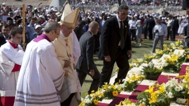 "Dio converta i violenti e coloro che hanno progetti di guerra, coloro che fabbricano e vendono le armi e rafforzi i cuori e le menti degli operatori di pace e li ricompensi con ogni benedizione". Lo ha detto il Papa nella sua visita ad Amman, in Giordania, al termine del suo discorso a circa 600 tra profughi siriani e giovani disabili.
