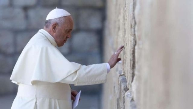 Al Muro del Pianto - Papa Francesco, accolto dal rabbino capo, è poi arrivato al Muro Occidentale, frammento del muro di sostegno della Spianata del Tempio di Salomone, distrutto in epoca romana. Il Papa ha sostato da solo davanti al Muro, ha poggiato la mano sulle pietre e vi ha posto un biglietto, raccogliendosi in preghiera silenziosa per alcuni minuti. Nel biglietto il testo del Padre Nostro in lingua spagnola. "Sono venuto a pregare e ho chiesto al Signore la grazia della pace", ha scritto il Papa nel libro d'onore. Le parole sono state riferito de lui stesso al gran rabbino di Israele prima di lasciare il sito.