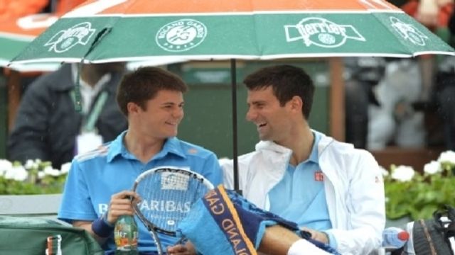 Novak Djokovic si conferma un fenomeno dentro e fuori dal campo. Lunedì, durante una pausa per pioggia nel match di primo turno al Roland Garros contro Joao Sousa, il campione serbo è stato protagonista di un simpatico siparietto con un raccattapalle. Nole prima lo ha fatto sedere al suo fianco, poi ha preso in mano l'ombrello al posto suo e gli ha dato in custodia la sua racchetta e per finire gli ha offerto una delle sue bibite e proposto un brindisi.