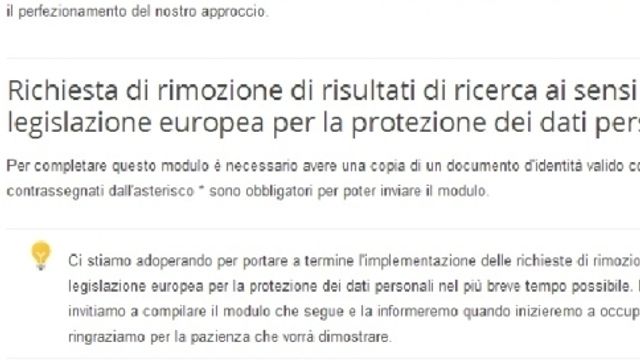 Google ha pubblicato un formulario da compilare online per inoltrare la richiesta.