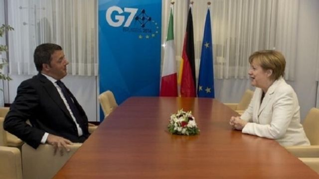 C'è stato spazio anche per uno scambio di battute sui mondiali nel bilaterale che si è tenuto nella sede del Consiglio Europeo a Bruxelles prima dell'inizio del G7 tra il presidente del Consiglio Renzi e la cancelliera Merkel, entrambi noti appassionati di calcio.