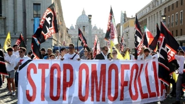 Al grido di "Stop omofolli", esponenti del movimento di estrema destra Forza Nuova sono scesi in piazza a Roma per contestare il Gay Pride e le richieste dei 200mila partecipanti. La "marcia per la famiglia", questo il nome della contro-manifestazione, è partita da piazza Mazzini e ha raggiunto Castel Sant'Angelo, a due passi dal Vaticano.
