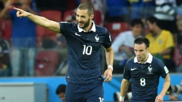 Due gol, novanta minuti da leader e pure lo zampino in occasione dell'episodio che passerà alla storia: per la prima volta in un Mondiale, infatti, una rete è stata convalidata grazie al decisivo intervento della tecnologia. Karim Benzema si carica la Francia sulle spalle e la guida al perentorio 3-0 sull'Honduras, che non dà mai segnali di vita per tutto il corso della gara. L'assenza di Ribery, rimasto a casa per i problemi alla schiena, toglie estro e ampiezza al nazionale di Deschamps, che prova a colmare il vuoto lasciato dal bavarese con la coppia Valbuena-Griezmann ai lati di Benzema. Gli esterni transalpini rimangono però stretti per lasciare campo alle discese di Debuchy e Evra; una soluzione che favorisce gli inserimenti dei terzini ma che, inevitabilmente, intasa gli spazi sulla trequarti. La pressione della Francia è costante nei primi 45', ma la sensazione è che la banda di Deschamps non spinga mai a tutta sull'acceleratore. Tanto basta, comunque, per mandare in tilt l'Honduras, che nei primi venticinque minuti viene graziato due volte da Matuidi (traversa di sinistro al 16') e Griezmann (traversa di testa al 23').