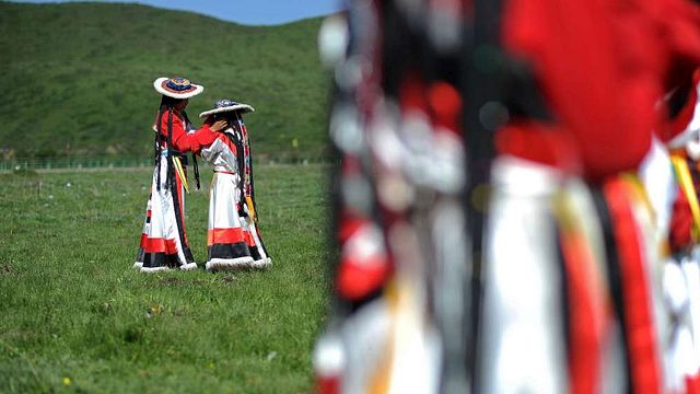 Un piede in una staffa e l'altro in aria su un cavallo in corsa, l'equitazione si fa acrobatica ad Aba Town, nella provincia del Sichuan, nella Cina sudoccidentale. Circa 300 fantini si sono sfidati in quindici specialità differenti per il tradizionale festival di equitazione che premia i migliori atleti. I partecipanti indossano abiti tradizionali dai colori sgargianti.