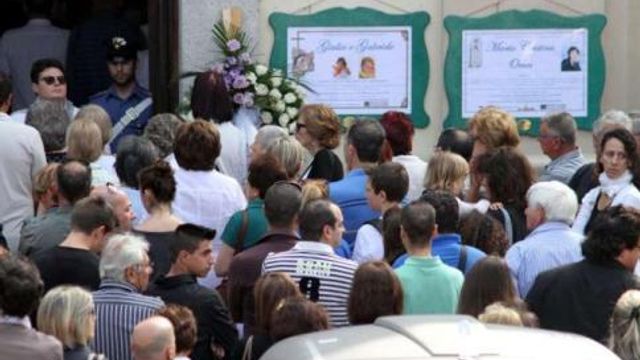 "Il nome del paese, fatto di brava gente, è risuonato dappertutto con orrore. Le parole hanno perso di significato: cosa significano ora 'papà', 'figlio' e 'amore'?", ha chiesto il sacerdote. La cerimonia è stata concelebrata dal vicario del vescovo e dal parroco della chiesa di San Giovanni, don Gianni. Le tre bare sono state portate nella chiesa dove è stata allestita la camera ardente. Ai funerali ha partecipato, nella piazza antistante e nelle vie limitrofe, tutto il paese.