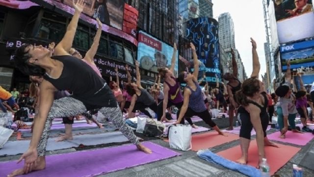 Oltre 11mila persone si sono date appuntamento in Times Square, a New York, per festeggiare il solstizio d'estate a suon di yoga. Tappetini e tenuta ginnica, la folla di appassionati ha invaso la piazza: "Nella tradizione dello yoga, questo è il giorno in cui si rende onore al sole", ha spiegato una delle istruttrici.