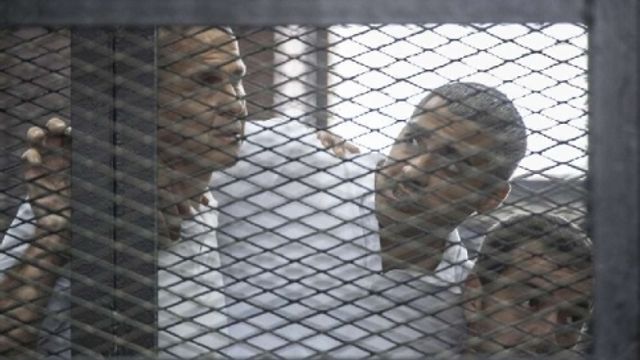 © -afp|Da sinistra i reporter condannati: l'australiano Peter Greste, l'egiziano-canadese Mohamed Fadel Fahmy al centro e l'egiziano Baher Mohamed a destra
