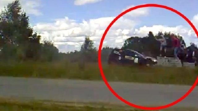 Un'auto è uscita di strada durante un rally finendo la sua corsa contro un ammasso di pietre, dove alcuni spettatori stavano guardando la gara. Il bilancio poteva essere quello di una strage, invece, per miracolo, tutti ne sono usciti illesi. Il gruppo, composto da almeno quattro persone, si trovava proprio all'uscita di una curva, il posto peggiore (e da sempre vietato dai commissari di gara) per assistere a un rally.