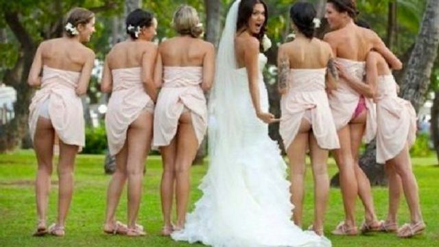 Il giorno più importante della propria vita va ricordato e fermato sotto ogni punto di vista, anche dal di dietro, insomma: è questo che devono avere pensato alcune giovani spose americane che in occasione delle loro nozze hanno radunato le damigelle per uno scatto "exposed". Su gonne e gonnelline e via libera al lato B, e poi tutte su Twitter: "Bridesmaids mooning", hanno chiamato questo nuovo trend, con un gioco di parole sulla luna che è tutto un programma. Non rimane che augurare (e augurarsi) cento di questi giorni...