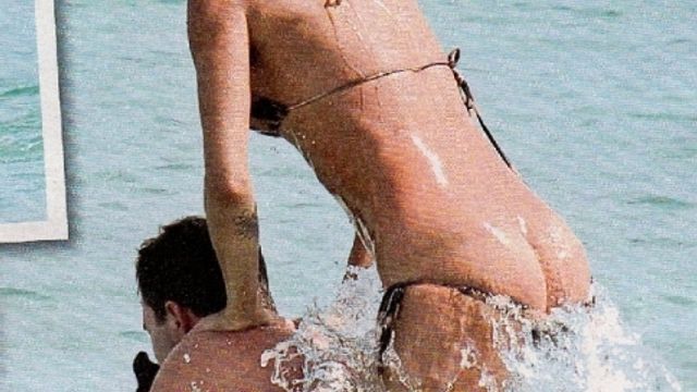 Dopo il topless anche il lato B. Elisabetta Canalis finisce chiappe al vento, mentre gioca a cavalcare il suo fidanzato Brian Perri nelle acque di Alghero, come mostrano gli scatti di Chi. Uno scherzo birichino del bikini o un "wardrobe malfunction", come si direbbe in inglese, la seconda lingua dell'ex velina, che ormai è di casa a Los Angeles.