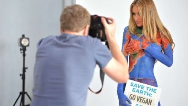"Salva la Terra, diventa vegano". E' la scritta che compare sull'unico cartello che copre Renee Somerfield, sul cui corpo nudo Jade Little ha disegnato il pianeta. Un sexy body painting per sensibilizzare l'opinione pubblica dell'importanza dei diritti degli animali. Gli scatti sono stati realizzati per la nuova campagna della Peta, l'associazione animalista che si batte affinché il mondo smetta di mangiare carne e sposi la dieta vegana.