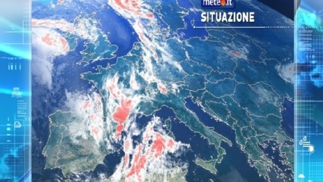 Oggi giornata in gran parte tranquilla e soleggiata in modo particolare lungo il versante adriatico e al Sud; bel tempo anche al Centro ma con un po' di nuvolosità in arrivo sulle regioni tirreniche. Più nuvoloso su Alpi e Prealpi, estremo Nordovest e Sardegna con anche qualche rovescio o temporale. In serata arriverà la parte più intensa della perturbazione, così i temporali tenderanno ad estendersi a gran parte del Nord e, successivamente, anche alle regioni centrali tirreniche. A causa dei forti contrati termici tra l'aria fresca e instabile della perturbazione e l'aria calda e umida presente al suolo sono attesi temporali intesi e localmente accompagnati da grandine. Venti deboli meridionali con locali rinforzi di brezza. Temperature massime in lieve calo in Sardegna e all'estremo Nordovest; in rialzo con punte in generale dai 30 ai 35 gradi al Sud. La regione più rovente sarà la Sicilia con picchi di 38°C. Giornata afosa anche al Nord. Previsti 30°C a Milano, 32°C a Bologna e Bari, 33°C a Firenze e Roma e 37°C a Palermo.