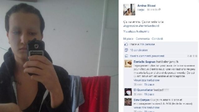 L'ex militante delle Femen, la tunisina Amina Sboui, afferma di essere stata aggredita la mattina del 6 luglio in una piazza di Parigi da cinque persone che le hanno "rasato le sopracciglia e i capelli". Amina ha denunciato l'aggressione sulla sua pagina Facebook, dove ha poi postato un suo "selfie" di queste ultime ore dopo i fatti.