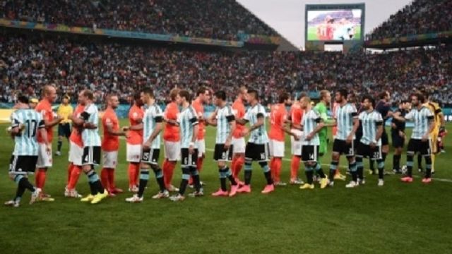 Rigori: Vlaar (O) parato, Messi (A) gol, Robben (O) gol, Garay (A) gol, Sneijder (O) parato, Aguero (A) gol, Kuyt (O) gol, Maxi Rodriguez (A) gol. Olanda (3-5-2): Cillessen, De Vrij, Martins Indi (46' Janmaat), Vlaar, Blind, De Jong (62' Clasie), Sneijder, Wijnaldum, Kuyt, Robben, Van Persie (96' Huntelaar). A disp.: Krul, Vorm, Kongolo, Veltman, Verhaegh, De Guzman, Fer, Depay, Lens. All.: Van Gaal.