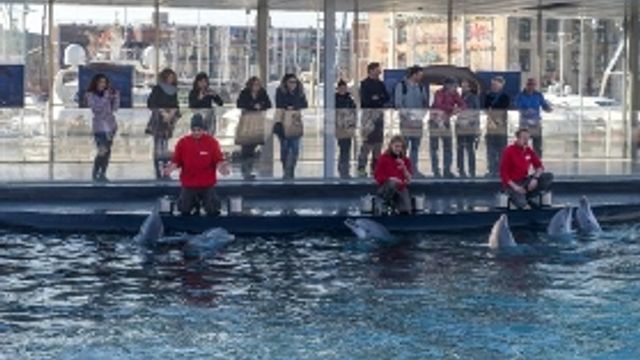Alle ore 12, 14 e 16, grazie alla parete vetrata aperta al piano superiore del Padiglione, il pubblico può “ascoltare” i delfini, le loro vocalizzazioni, il rumore dello sfiato quando salgono in superficie per respirare e, attraverso le spiegazioni degli esperti, approfondire le interazioni tra gli animali e gli addestratori che di volta in volta sono diverse. Gli animali in ogni caso, sono impegnati nei giochi e negli esercizi tipici della loro specie nella vita libera in mare, mentre non vengono proposte, per filosofia stessa dell'Acquario, attività di esibizione.