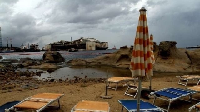 Issata la bandiera blu - La "Blue Peter", la bandiera che in gergo marinaro significa "nave pronta a partire", è stata issata sulla parte più alta del relitto della Costa Concordia. La bandiera è comparsa anche se le operazioni di rigalleggiamento al Giglio non sono state dichiarate concluse.