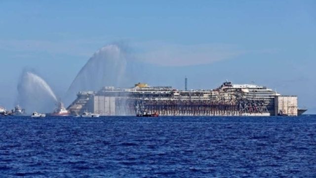 La Costa Concordia è in navigazione verso Genova alla velocità di 1,9 nodi. Per la prima volta da due anni e mezzo, per vedere il relitto dall'Isola del Giglio bisogna guardare all'orizzonte: la nave è ormai a oltre un miglio dalla costa.