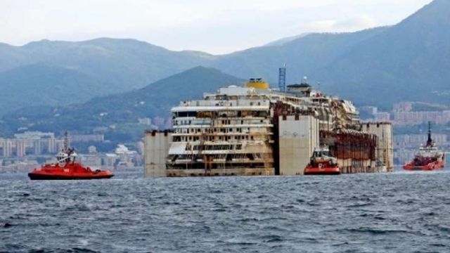 La Costa Concordia, trainata dai rimorchiatori, ha compiuto il suo ultimo viaggio. Il relitto ha fatto ingresso nel porto di Genova per essere ormeggiato e in seguito smantellato.