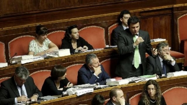 E' bagarre nell'Aula del Senato su un emendamento di Sel che prevede l'elezione diretta dei membri di Palazzo Madama. Quando il presidente Pietro Grasso dà il via alla votazione, che potrebbe avere l'effetto di precludere altri voti sul tema, l'opposizione insorge: "Non si può, non si può", si sente urlare dai banchi del M5S. Grasso ha così sospeso la seduta.