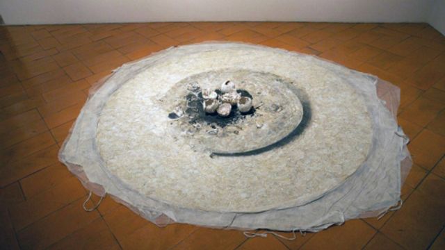 Archeologia di forme, delicate e soffuse. Parole scritte nella sabbia e portate nel vento. Alchimie di quanto il mare ributta sulla spiaggia e paziente amore discerne e assembla e ripropone in una visone poetica del mistero rinnovato della creazione. Il pendolo di Gabriella oscilla tra antropologia, astronomia, geologia, archeologia, storia, mito e le nostre esili esistenze. Un viaggio del sentire che ripropone antiche cabale. Ferro arrugginito che in oro si trasforma. Come nella meditazione il silenzio diventa lo spazio della pausa tra un rifiuto che diventa violino, un frammento che diventa ricamo prezioso. Un'autostrada di note che rimbalzano l'una con l'altra in una sinfonia alchemica. Segni sulla sabbia che tracciano arcaici percorsi, avvolti dal silenzio. La collocazione museale mai fu così appropriata.