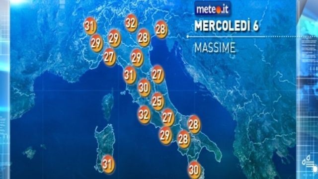 Nella giornata di venerdì un po' di nuvole sparse e irregolari attraverseranno il Nord, alternate comunque ad ampie zone di sereno soprattutto verso le coste adriatiche. Tra pomeriggio e sera possibili locali rovesci o temporali su Valle d'Aosta, Piemonte e Lombardia nord-occidentale. Nel resto del Paese tempo per lo più soleggiato, cielo in prevalenza sereno o poco nuvoloso, salvo locali addensamenti pomeridiani su Appennino meridionale, Salento e Calabria. Temperature stazionarie o in lieve aumento al Centrosud, intorno ai 30 gradi con punte anche al di sopra.