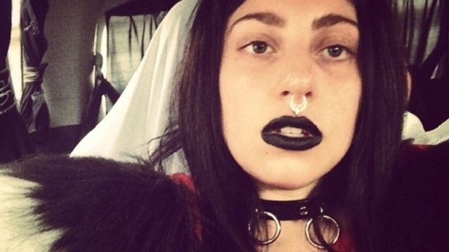 Per il resto capelli rigorosamente black, sia in versione liscia che riccia, e al massimo qualche sbaffo colorato sul viso che ricorda la copertina di "Art Pop", il suo ultimo album.