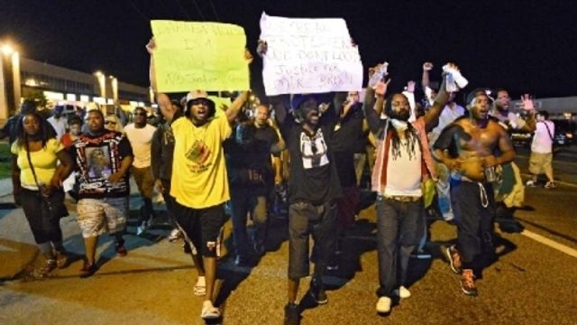 Manifestazioni nella notte - I dimostranti hanno marciato con cartelli e al grido di "Mani in alto, non sparare", al quale si è aggiunto un altro slogan: "Noi manifestiamo, non saccheggiamo".
