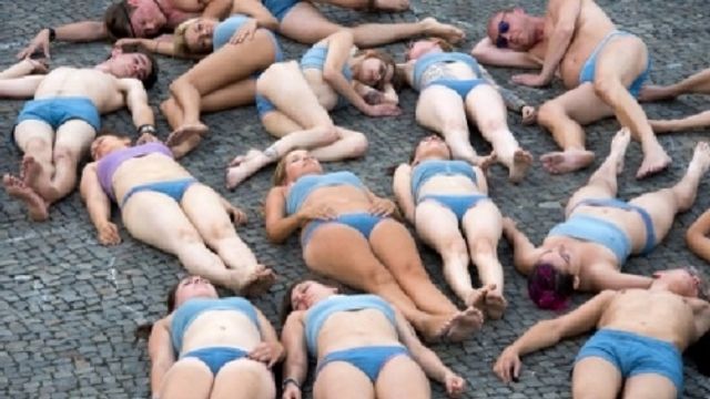 Ragazzi e ragazze nudi a Berlino formano "elefanti" e altri animali selvatici per la campagna della Peta. L'organizzazione protesta contro lo stato in cui sono costretti a vivere gli animali selvatici nei circhi. La manifestazione si è svolta davanti alla Porta di Brandeburgo, a Berlino.